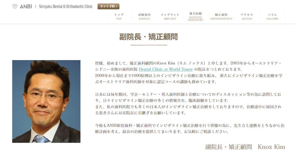 当院医院長のキム医師はANBI新宿歯科・矯正歯科の副医院長でもあります。